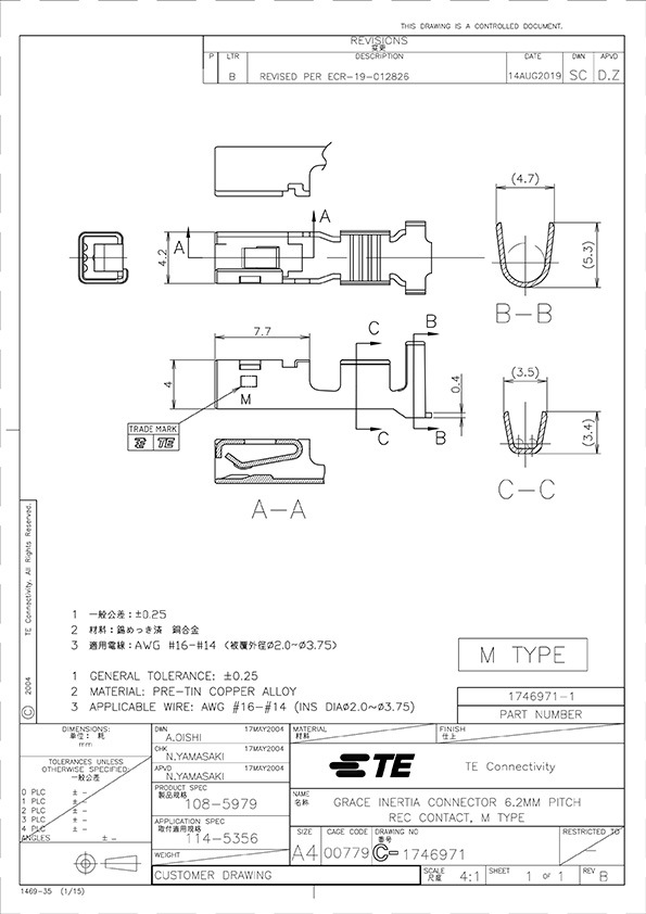 Part Number料号Cable Dia. Range线径范围Thread Size螺纹规格Description型号Part Dimensions零件尺寸Min.